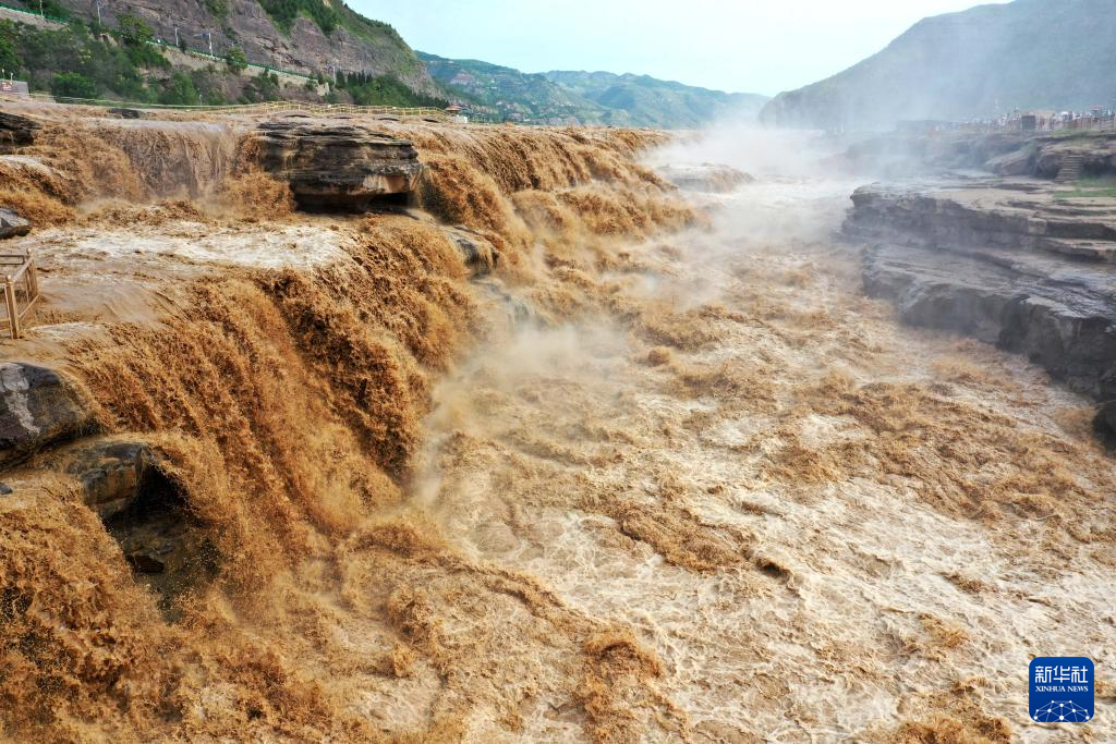 近日,黄河干流进入主汛期,受上游降雨增多和万家寨水库调节放水影响,位于晋陕交界的壶口瀑布水量增大,主副瀑布连成一线,再现壮美瀑布群景观。(吕桂明)