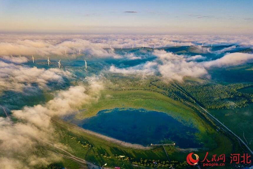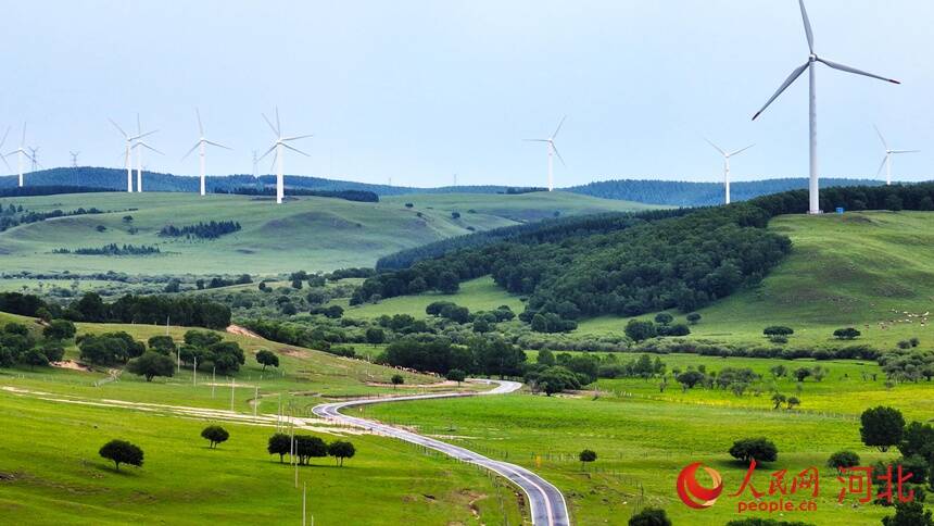 近日,位于河北承德境内的御道口风景区雨后初霁、鲜嫩欲滴,宛如现实版“绿野仙踪”。远处风车群清晰可见,高原湖泊的静谧与清洁能源的动感完美融合。(商帆)