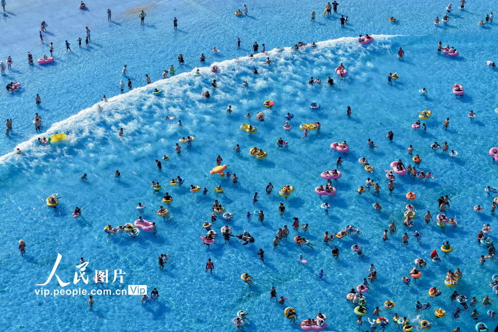 近期,南京持续高温天气,游客和市民纷纷来到水上乐园避暑,尽情享受夏日清凉。(方东旭)