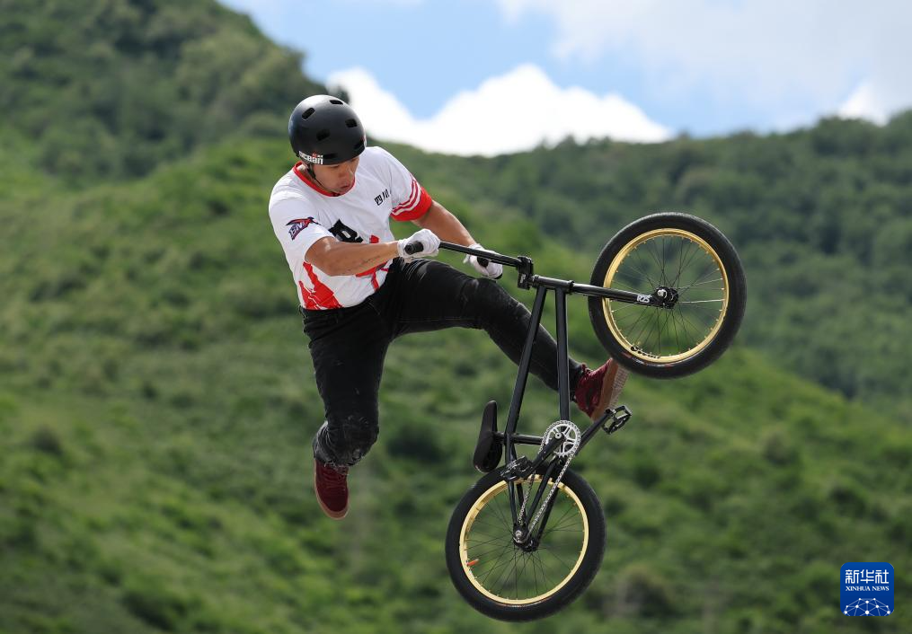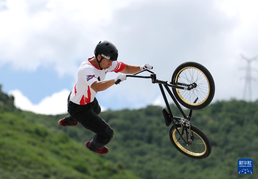 7月6日,2025年全国自由式小轮车锦标赛暨全国青年自由式小轮车锦标赛精英男子组决赛在河北省张家口市崇礼自行车极限运动公园举行。四川队选手海洋在比赛中。最终,他以94.5分的成绩夺得冠军。