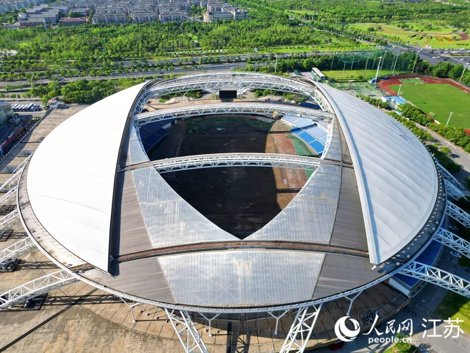 南通体育会展中心有“南鸟巢”之称,是我国第一个采用巨型活动开启式屋盖的体育场馆,于2006年启用,原来可容纳3万名观众。记者实地探访看到,新增加的座位已安装到位,草坪场地施工、设施设备改造均在有序进行。据现场工作人员介绍,此次场馆改造从7月初开始,将严格按照“苏超”赛事标准进行,预计8月底完成。