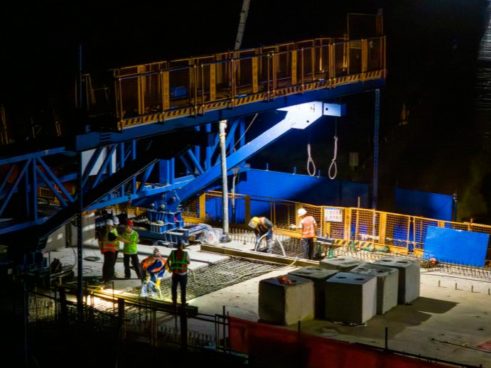 7月8日,由中铁五局承建的成渝中线高铁土桥枢纽互通双线特大桥连续梁顺利合龙,该连续梁全长约242米,是成渝中线高铁重庆段跨度最大的连续梁。土桥枢纽互通双线特大桥位于重庆市铜梁区,全长3271.6米,上跨重庆三环高速及铜安高速公路,共设有92个桥墩,2个桥台。
