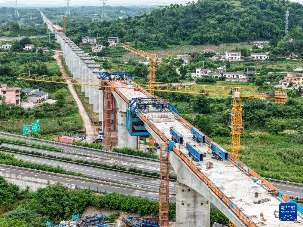 成渝中线高铁是我国“八纵八横”高铁网沿江通道的重要组成部分,正线全长292公里,设计时速350公里。(唐奕)