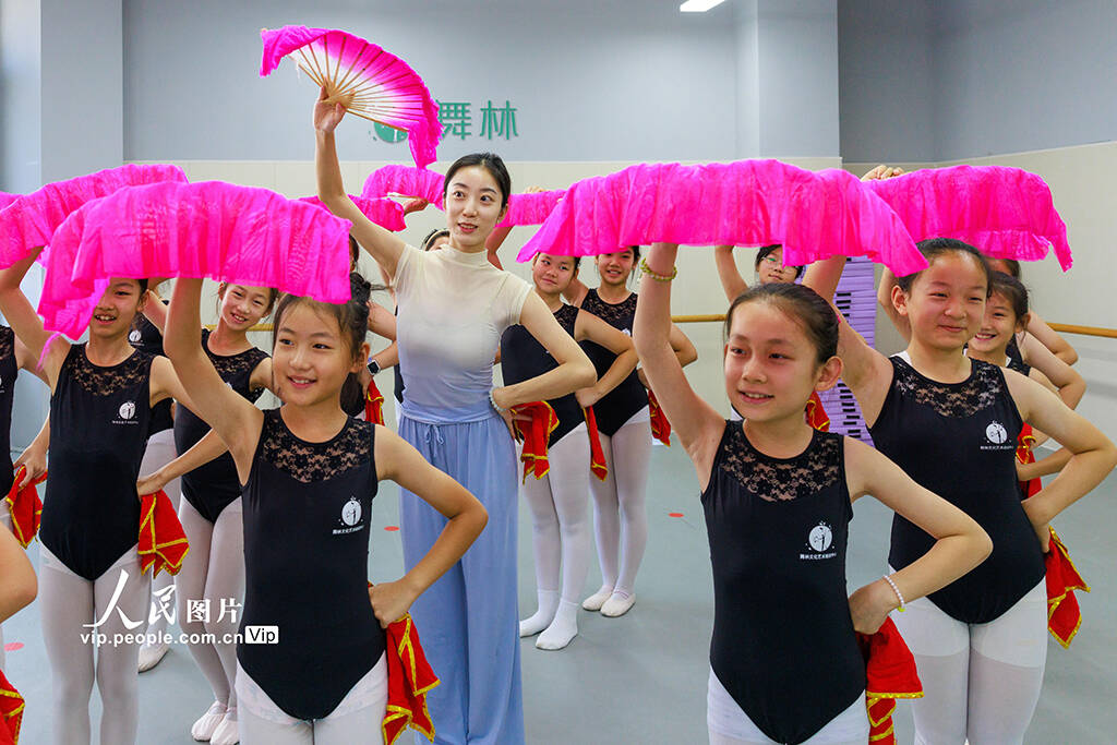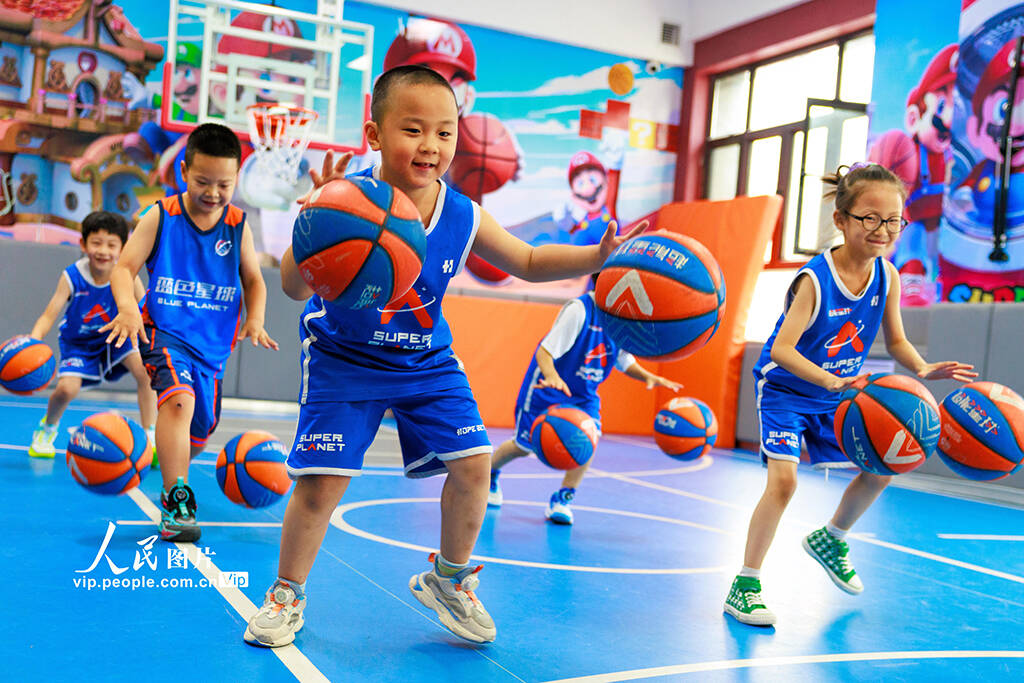 7月8日,新疆乌鲁木齐经济技术开发区(头屯河区)高铁街道锦霞社区组织辖区小朋友开展唱歌、绘画、舞蹈、篮球等活动,丰富他们的暑期生活。(孙振嵩)