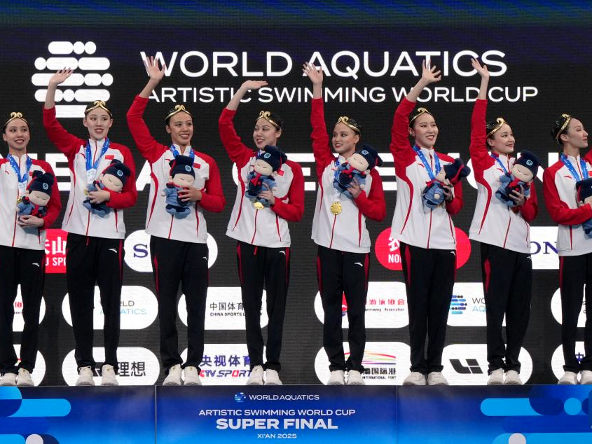花样游泳世界杯总决赛:中国队获得集体技术冠军