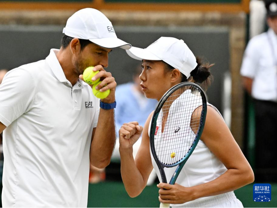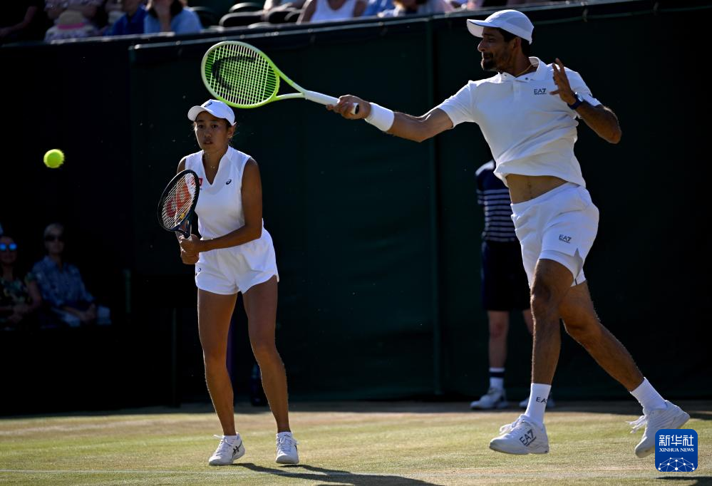 7月8日,在英国伦敦举行的2025温布尔登网球公开赛混双半决赛中,阿雷瓦洛(萨尔瓦多)/张帅(中国)组合0比2不敌索尔兹伯里(英国)/斯特凡尼(巴西)组合,无缘决赛。(李颖)