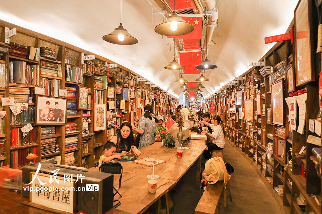 7月8日,重庆市九龙坡区黄桷坪街道的军哥书屋,游客、市民在阅读和打卡。(孙凯芳)