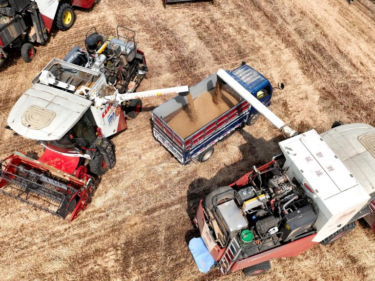 河北隆尧:小麦抢收忙