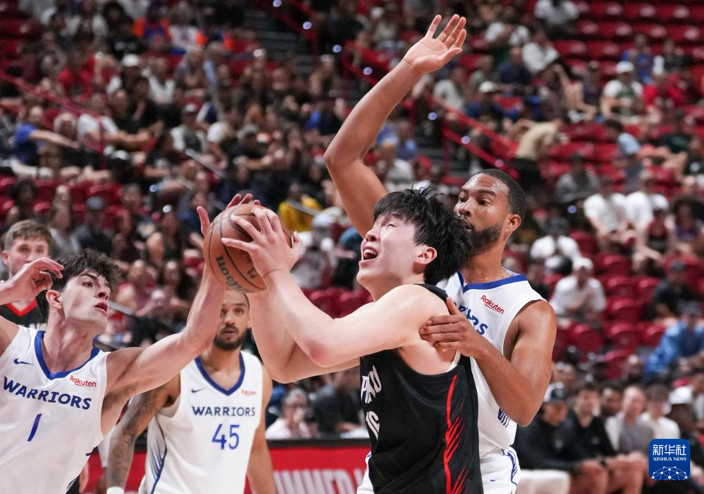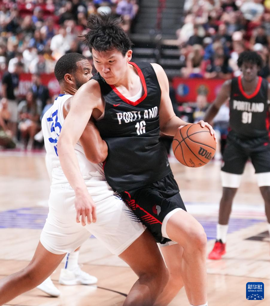 7月11日,在2025年NBA夏季联赛中,波特兰开拓者队106比73战胜金州勇士队。这是中国球员杨瀚森在NBA出战的首场比赛。(孙宇轩)