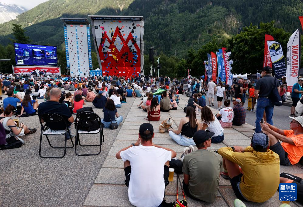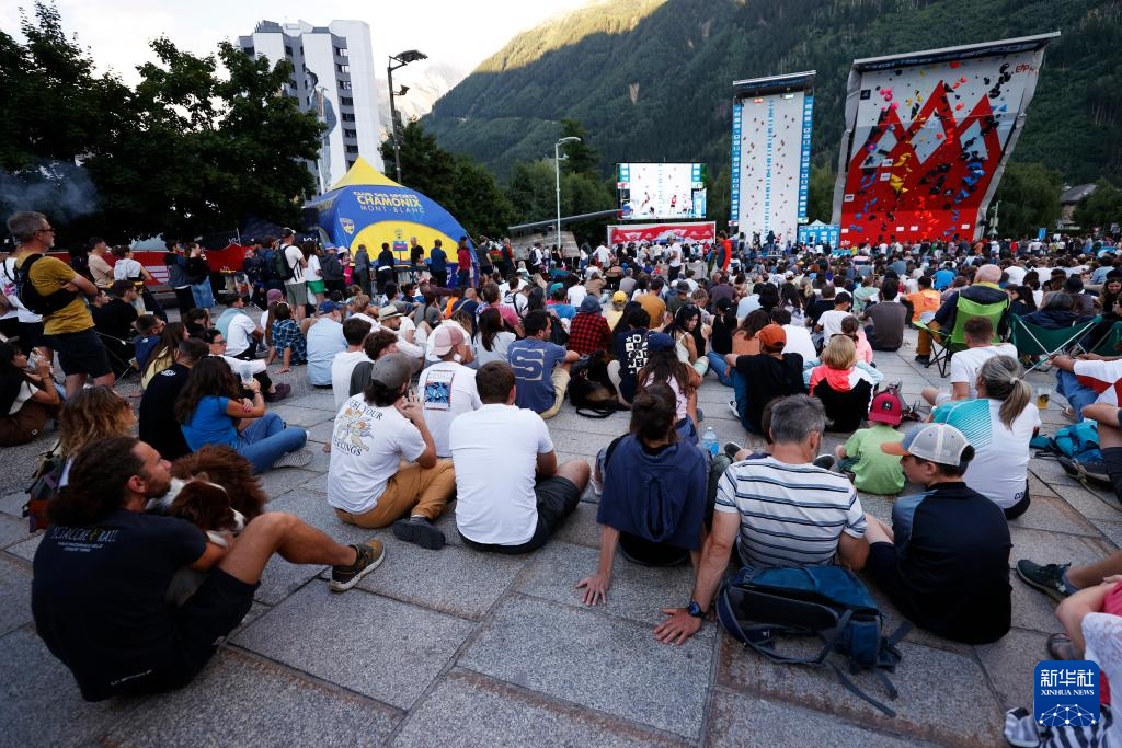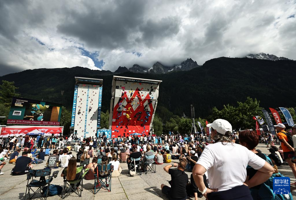 2025攀岩世界杯霞慕尼站比赛于7月11日至13日举行。图为人们在法国霞慕尼观看2025攀岩世界杯速度资格赛。(高静)