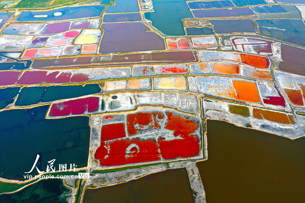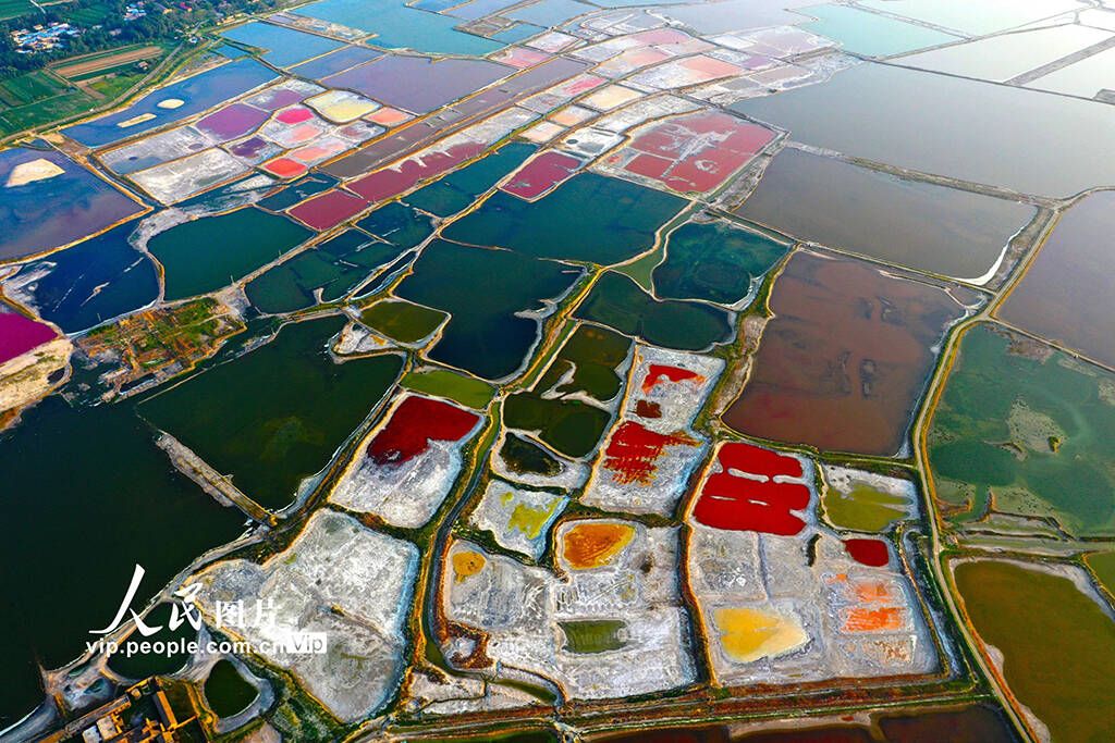 7月13日,山西省运城市,七彩盐湖色彩斑斓,美不胜收。(郝健)