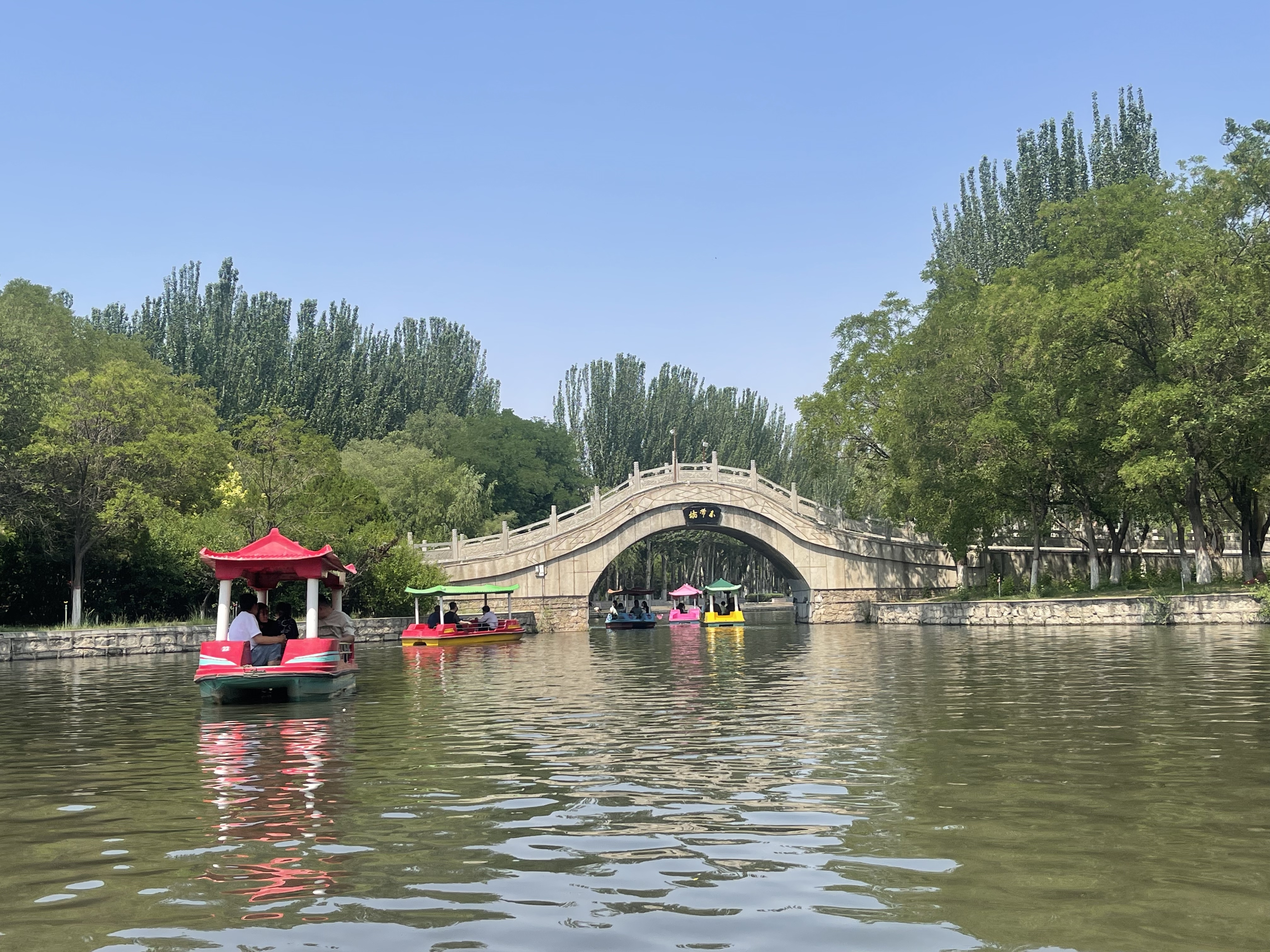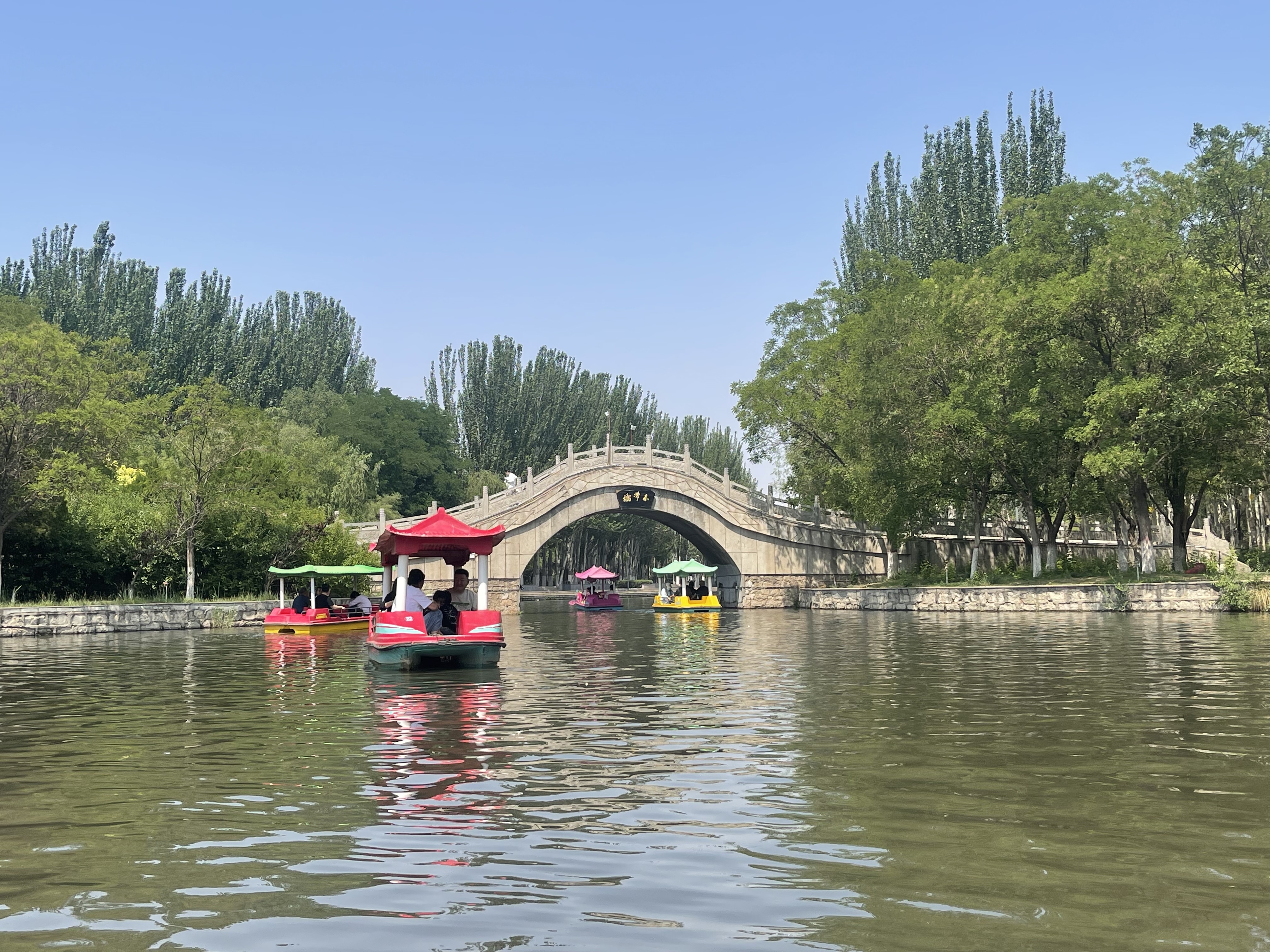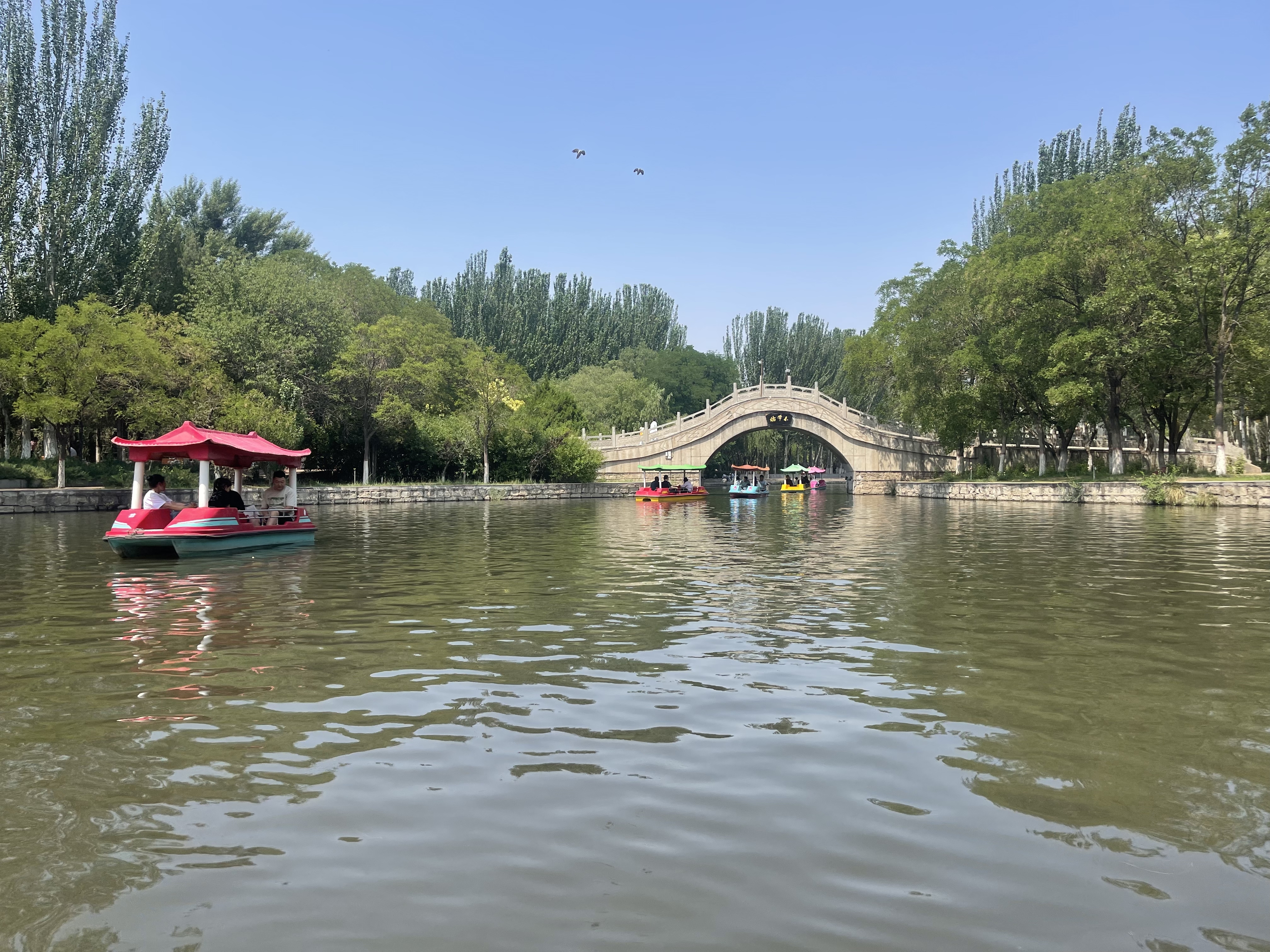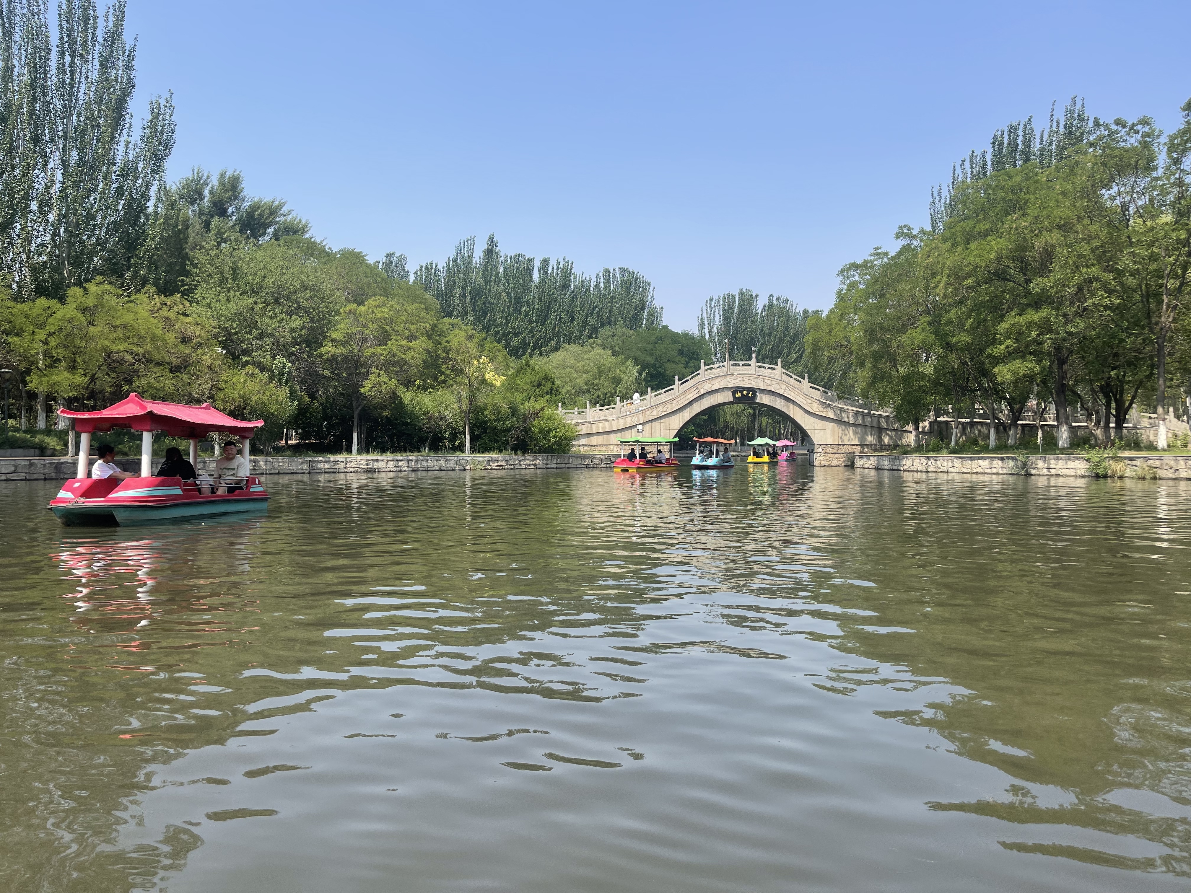 近日,我市气温持续升高,市人民公园的湖面划船项目成为市民夏日消暑的热门选择。图为7月14日,市民在公园湖面划船游览,尽享“舟行碧波上,人在画中游”的惬意时光。