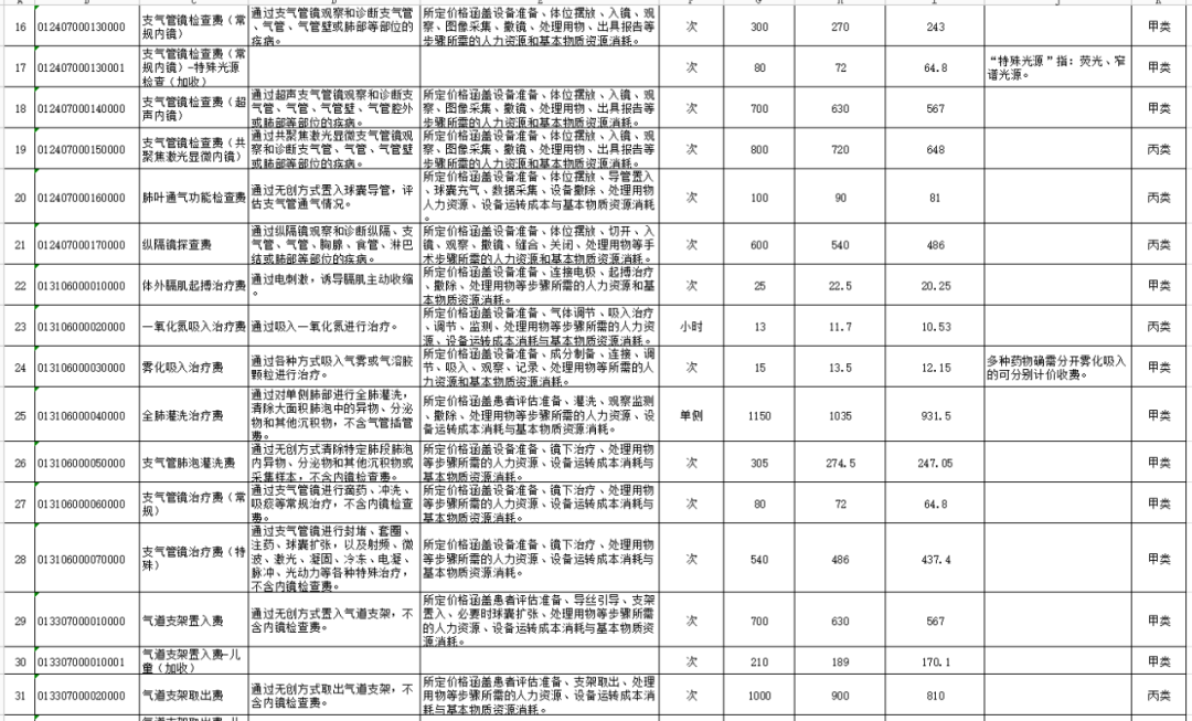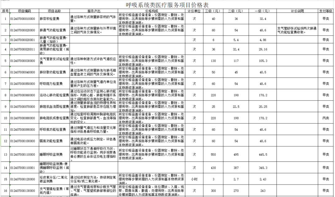 按照国家医保局《呼吸系统类医疗服务价格项目立项指南(试行)》,乌海市将现行呼吸系统技术规范项目映射整合为68项价格项目,停止“超声雾化吸入”等135项呼吸类医疗服务价格项目,修订“经X线下支架置入术”使用范围。整合后的价格项目分为诊断、治疗及监测三大类,涵盖了呼吸系统医疗服务的主要环节。例如,诊断类项目中,肺功能检查明确计价单位为“次”及服务流程;支气管镜检查费区分常规与特殊光源(如荧光、窄谱光源),并细化价格构成。治疗类项目中的介入治疗和吸入治疗也明确了计价方式,避免了不必要的费用叠加。