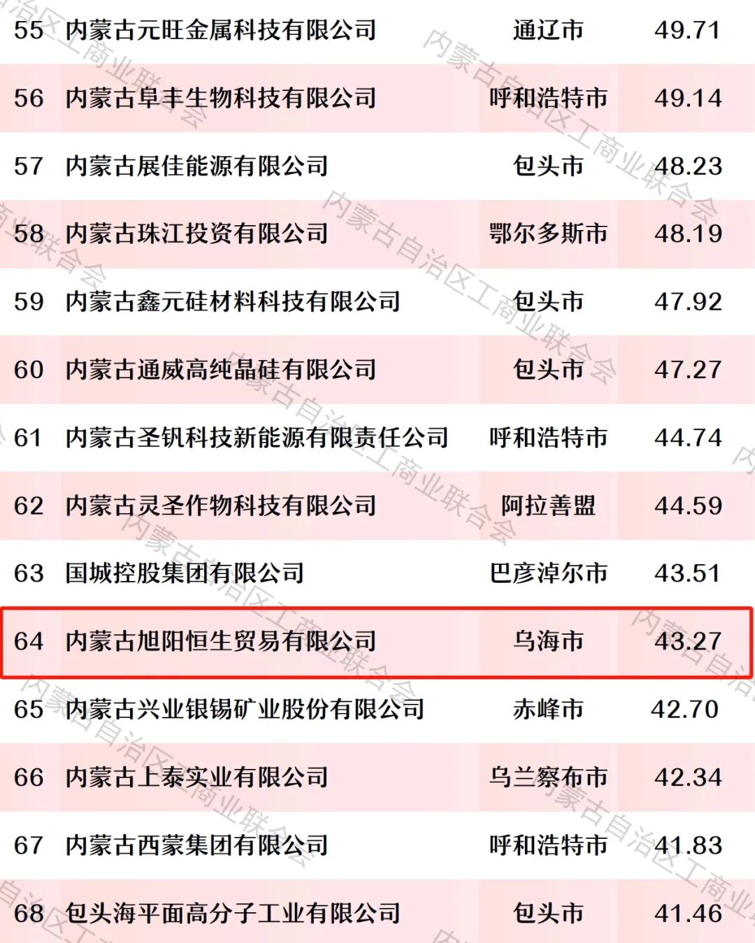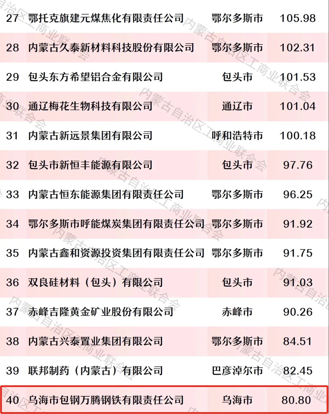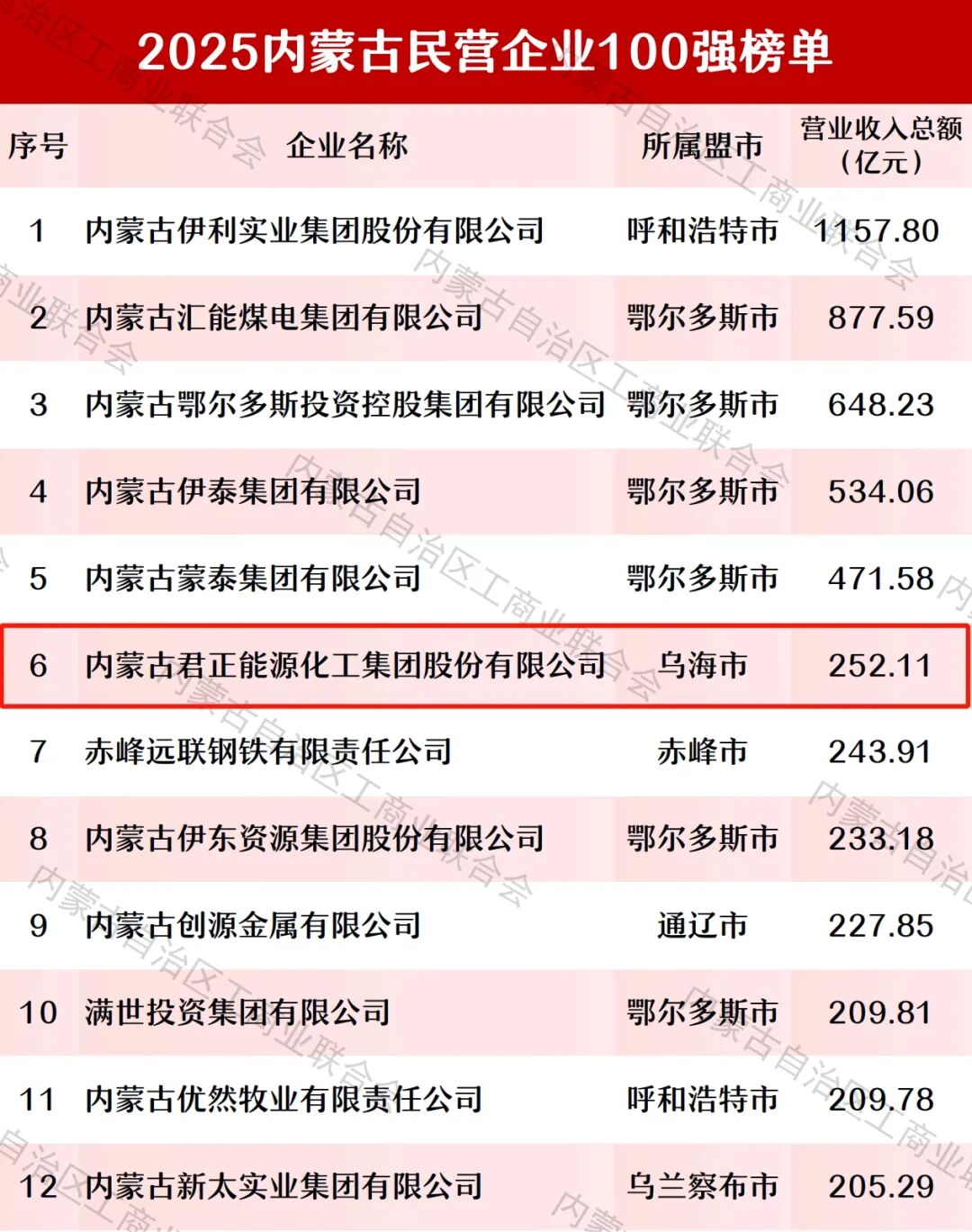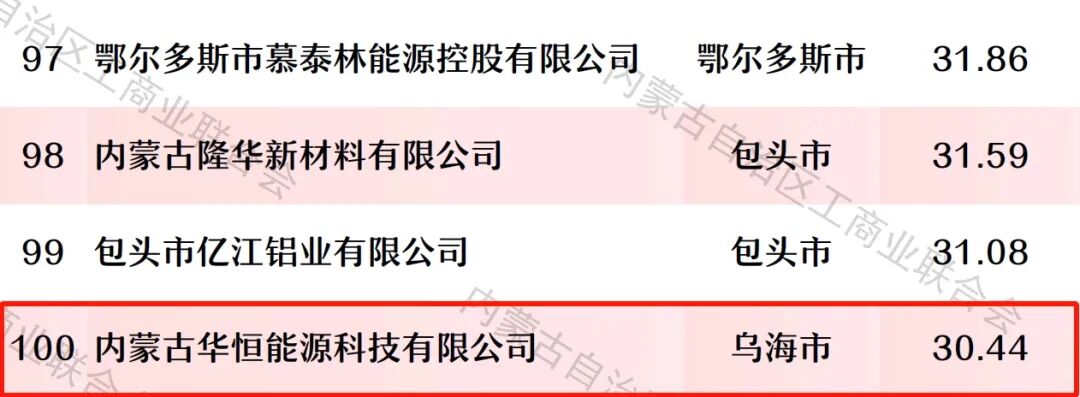 100强!乌海6家→