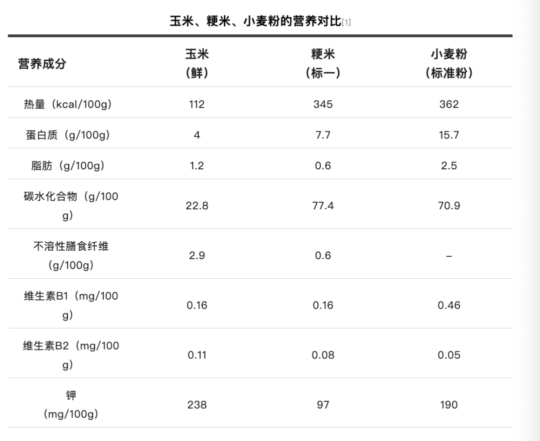矿物质钾:玉米的钾含量为238mg/100g,虽然比不上荞麦、燕麦、高粱米、藜麦、小米等全谷物,但也比精米白面优秀,分别是粳米和小麦粉的2.5倍、1.3倍。