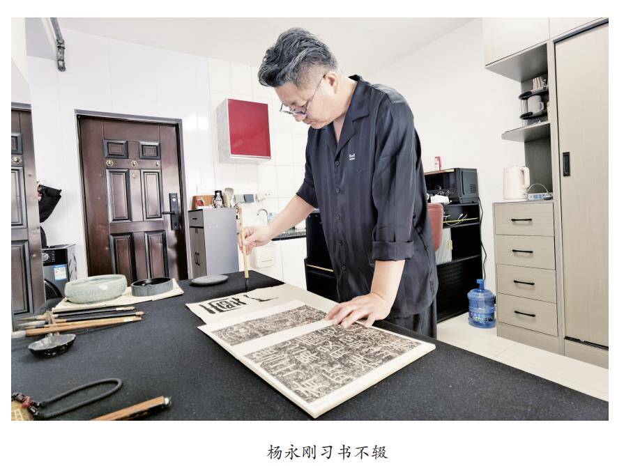 “我很长一段时间都是自学,比起那些有‘童子功’、科班出身的爱好者,还差着一大截呢。”杨永刚说这话时,眼里却闪着期待的光,他最大的愿望,是能到知名高校系统学习书法理论,让笔下的字不仅有功夫,更有厚度——毕竟,这墨香浸润的路,他想一直走下去。