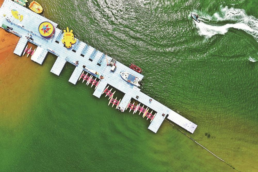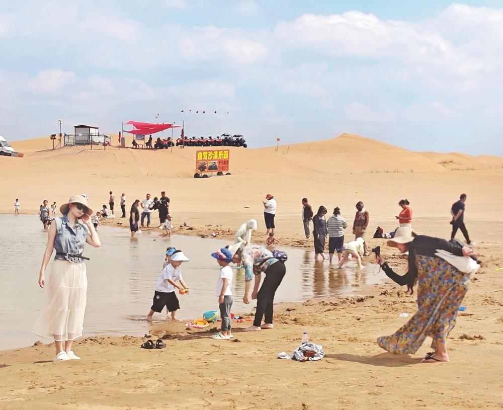 暑期,我市迎来旅游旺季,各景区景点游客如织,文旅市场消费旺盛。图为7月21日,乌海湖休闲度假旅游区风景如画,游客在打卡游玩。
