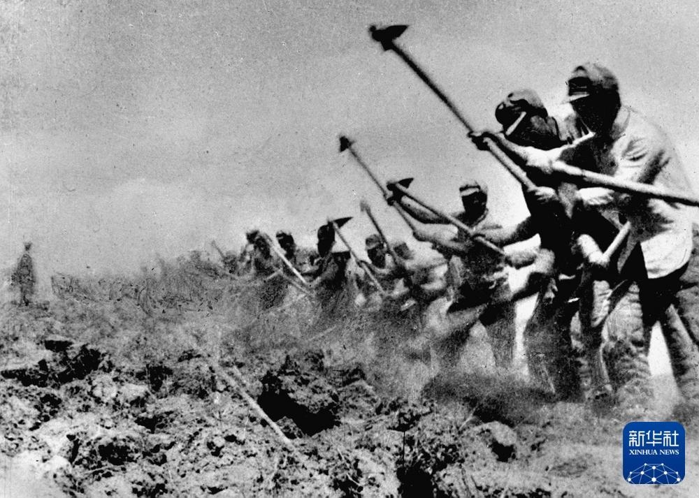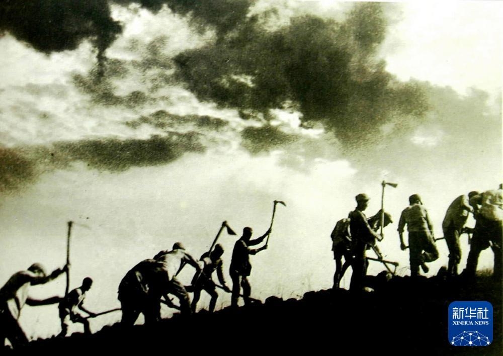 八路军战士在南泥湾开荒时的情景。吴印咸摄
