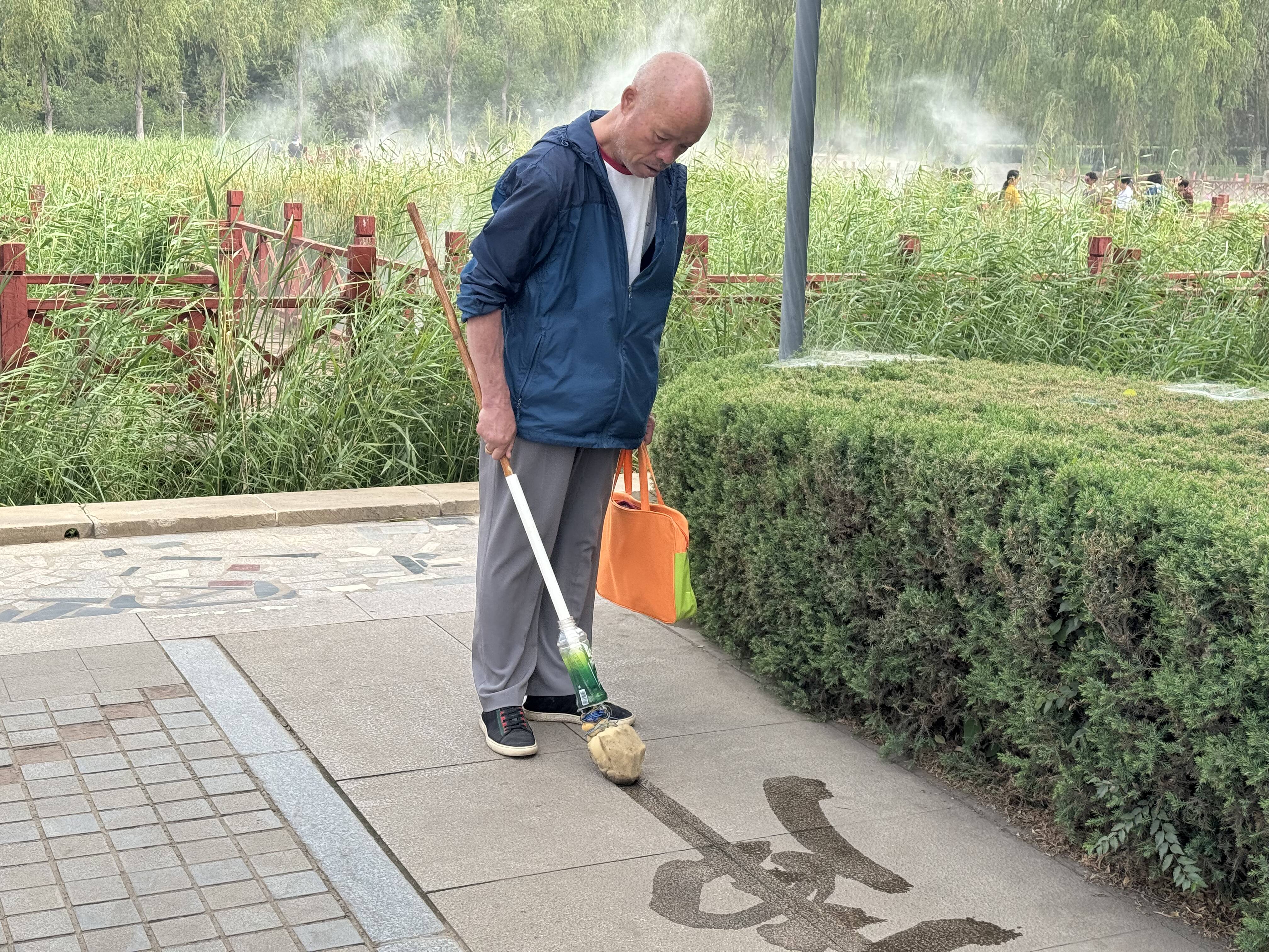 每当朝阳升起,市人民公园木制的棋牌桌凳也镀上了一层金色,老人们兴冲冲地摆好了棋,准备“一决高下”;人工河边,绿草地旁,垂柳掩映中的一片空地上有10余名地书爱好者在专注地练习地书;古香古色的凉亭前,有人气定神闲地练着太极,有人兴致勃勃地舞着剑……