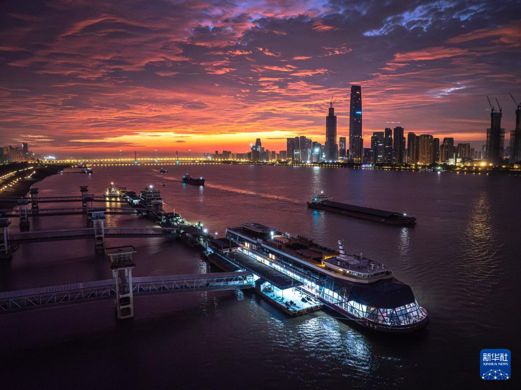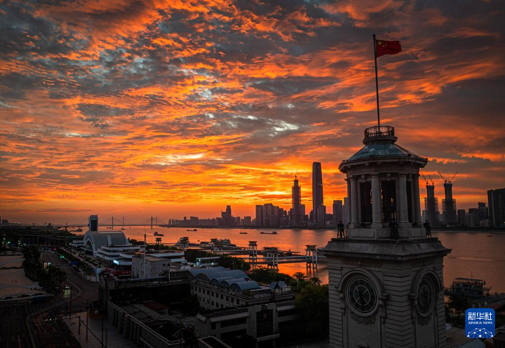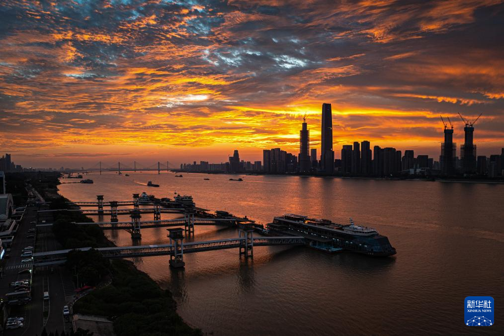 7月26日清晨,武汉天空出现绚丽朝霞。(肖艺九)