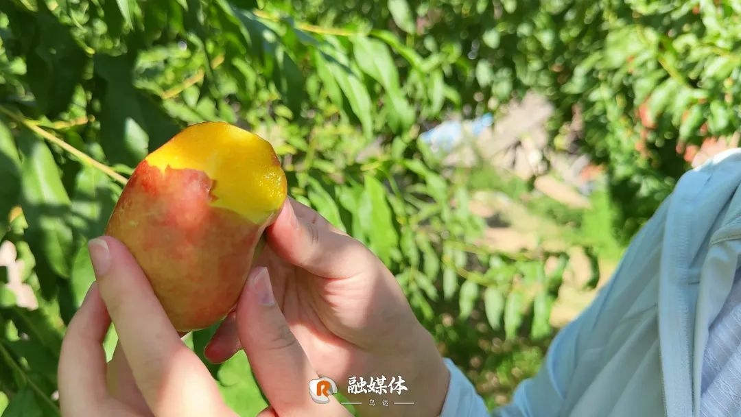 每逢假期,桃林里更是一派热闹景象。大家在桃林间穿梭采摘,欢声笑语不断。游客丁先生一边采摘一边说:“听说这里的油蟠桃口感很好,现在正好放暑假了,带孩子来体验一下,一起把这份‘乌达的甜蜜’带回家。”