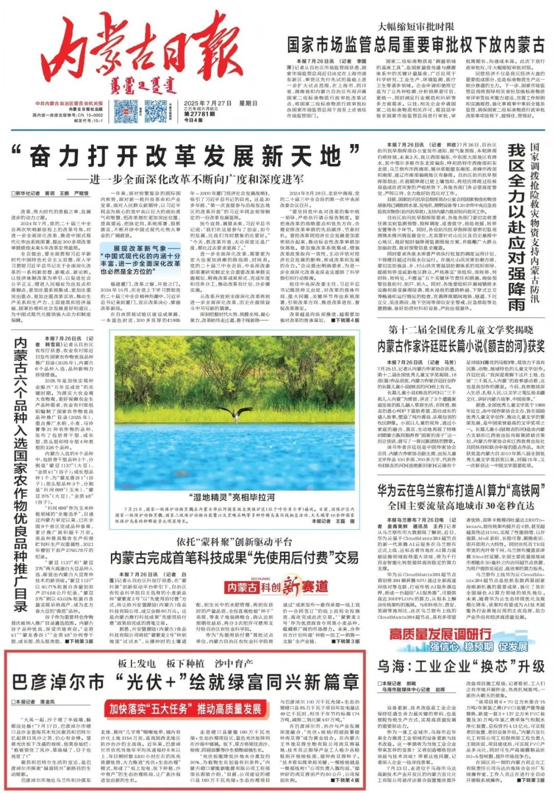 《内蒙古日报》(2025年7月27日1版)。