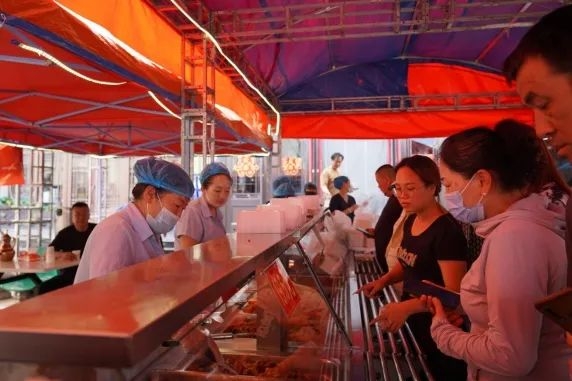 在天宝红酒店门口的餐摊前,同样排起了小长队。几张临时摆放的餐桌旁,市民们吃着美食。“以前午休总纠结吃什么,外卖要等,小餐馆又担心卫生。现在来这儿买份套餐,热乎又放心,吃完还能回办公室歇会儿。”在附近上班的李女士说道。