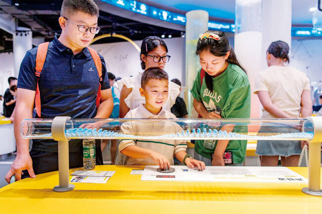 7月27日,在位于浙江省金华市区的金华之光科技馆里,青少年们正体验科普项目,寓教于乐的科普项目让他们流连忘返。