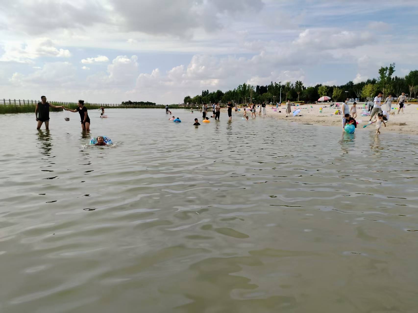 炎炎夏日,不少市民、游客纷纷来到滨河公园戏水玩沙,感受夏日的美好。