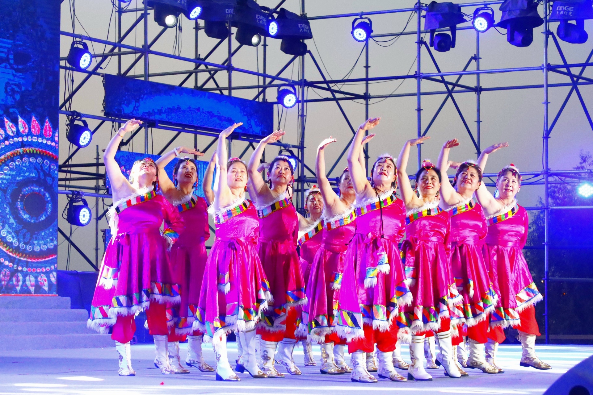 7月27日晚,海勃湾区滨河文化广场华灯璀璨、乐声飞扬,第二十九届广场文化艺术周迎来第二场重磅活动——"舞动北疆 绽放活力"全市优秀广场舞展演。来自全市的优秀广场舞代表队轮番登场,欢快的节奏、优美的舞姿点燃了夏夜的激情,现场观众掌声雷动,喝彩不断,充分展现了我市群众文化的蓬勃生机与无限活力。