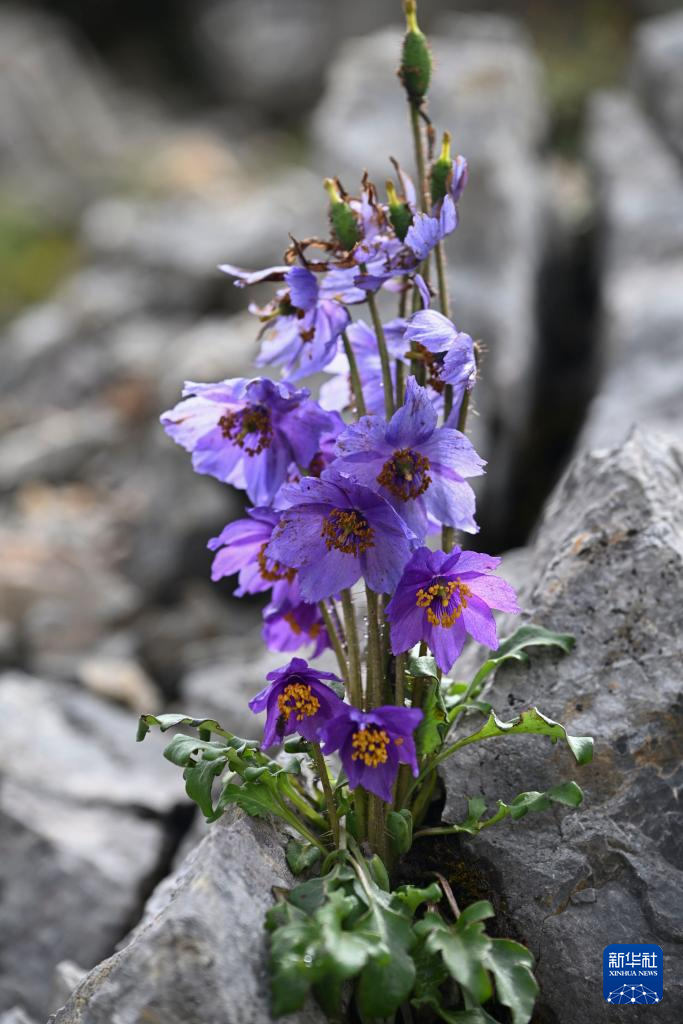 7月23日在云南省迪庆藏族自治州香格里拉市石卡雪山景区流石滩拍摄的拟秀丽绿绒蒿。新华社记者 秦晴 摄