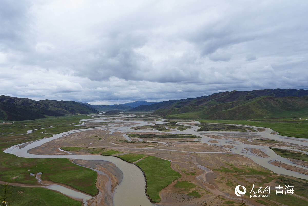 水系交织,奔流向前,夏至高原,黄河谷地雄浑壮美。位于青海省果洛藏族自治州达日县的达日黄河国家湿地公园内,辫状水系时而交汇,时而分离,编织出一张巨大的辫状水系网络,与两边的高山、草原共同勾勒出一幅高天厚土之下绿水青山的壮美画卷。