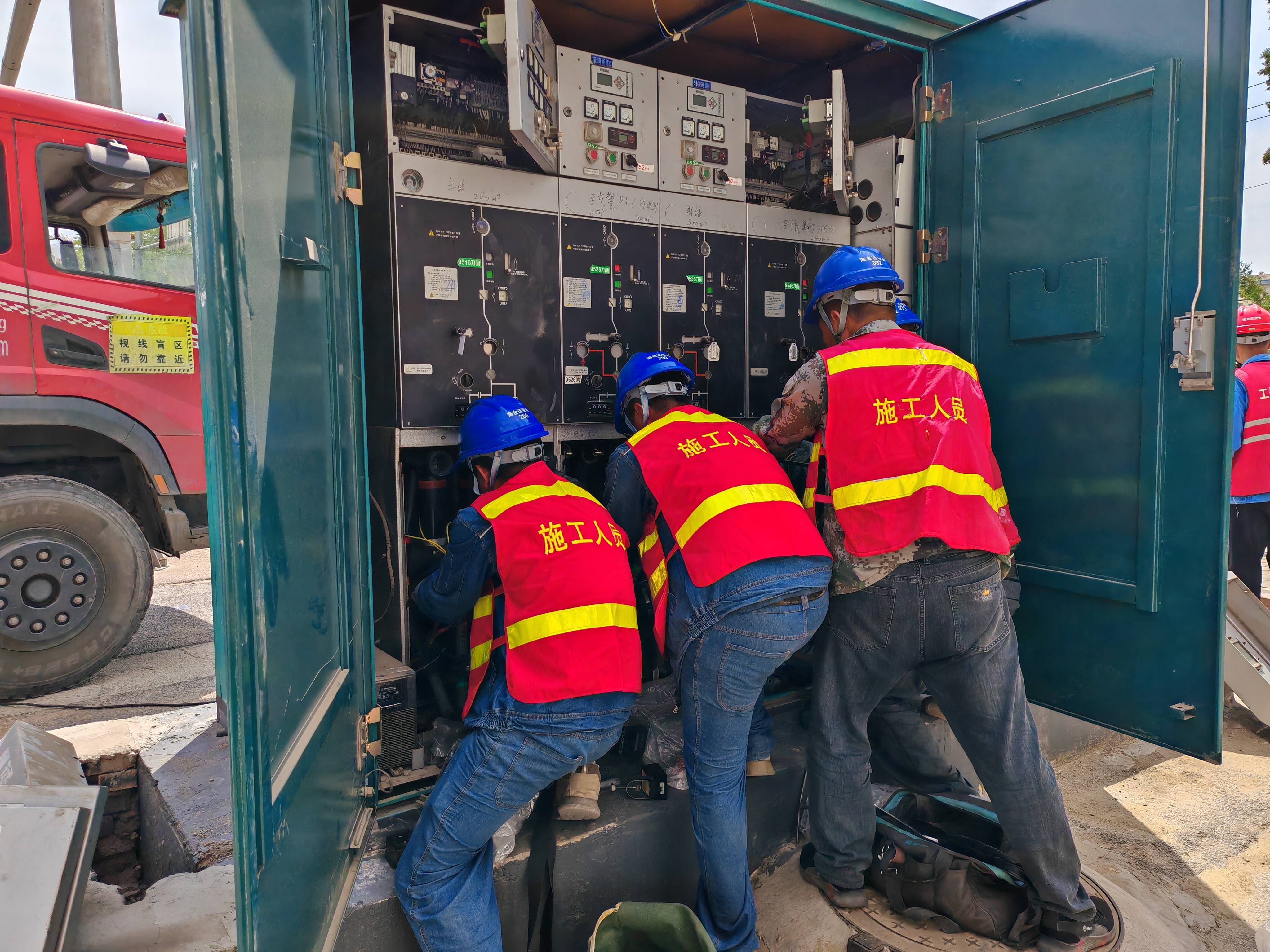 施工现场,工作人员头戴安全帽、身穿工作服,全神贯注地开展着紧张的作业。大家严格规范作业标准,敷设高压电缆、启动中压发电车进行负荷转带、拆除老旧设备、安装新设备、接线调试等工作紧锣密鼓地进行。经过近3个小时,环网柜更换顺利完成,一次性送电成功,消除设备本体隐患,构建了智能化运维体系。