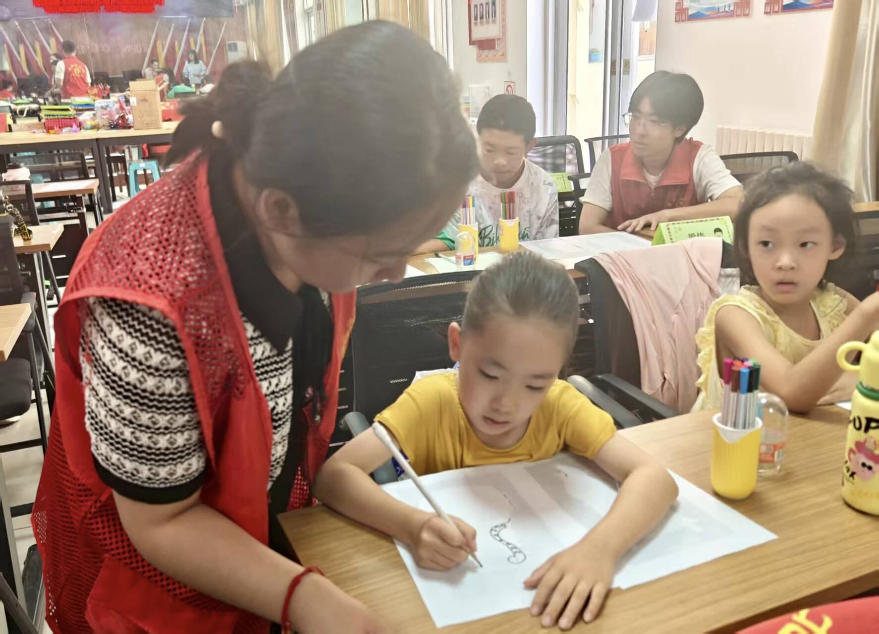 据了解,该场活动的主题是“让中华文化亲切可爱之奇妙博物馆——画蛇添福”。海勃湾区图书馆的暑期志愿者通过生动讲解,让孩子们了解“蛇”的生肖文化,并介绍了古代青铜器中的蛇纹装饰艺术,了解蛇纹装饰在生活中的巧妙运用。随后,孩子们在志愿者的带领下进行了创意绘画,让本场活动更具趣味性与互动性。