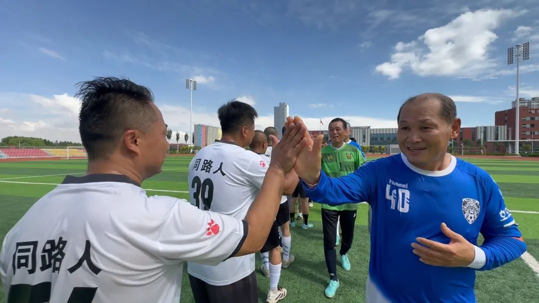 同时,中韩中老年球员们在赛场上