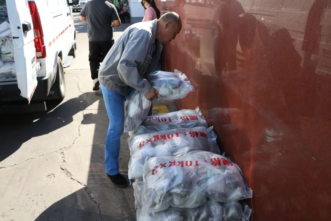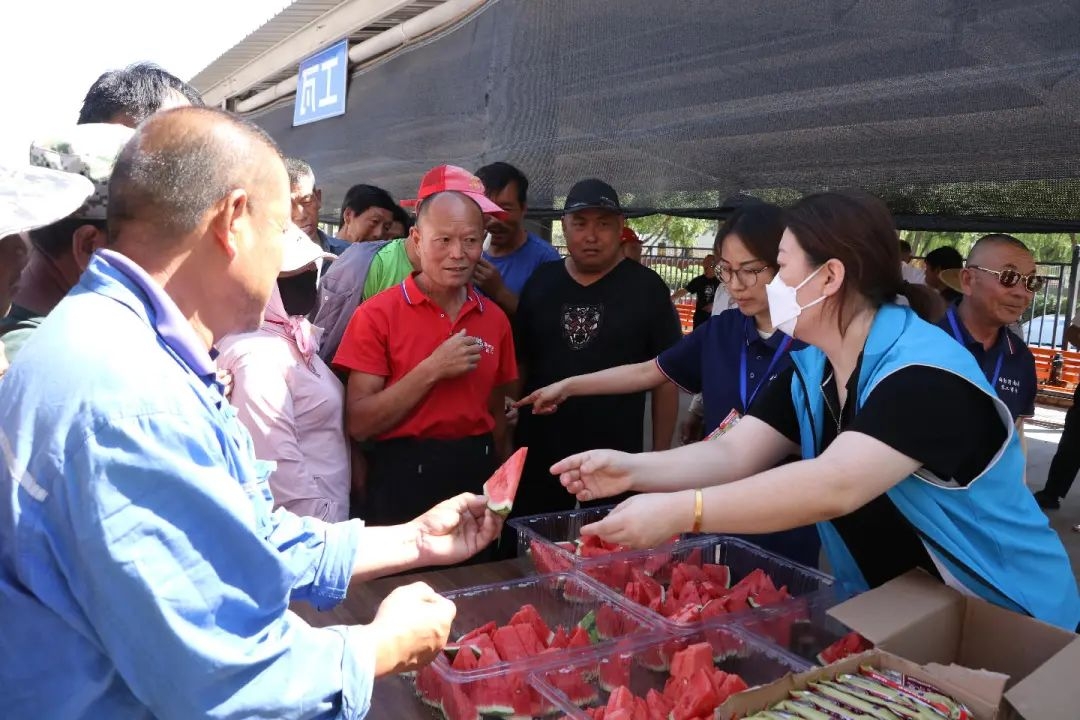 海勃湾区总工会携手新华西街道工会在海勃湾南部零工市场,为100余名零工、外卖小哥、环卫工人送去消暑物资与贴心关怀。清凉物资区整齐陈列着矿泉水、雪糕、绿豆汤、西瓜等消暑品,工作人员热情招呼大家领取,递上一块清甜西瓜、一支沁凉雪糕,驱散高温带来的燥热。