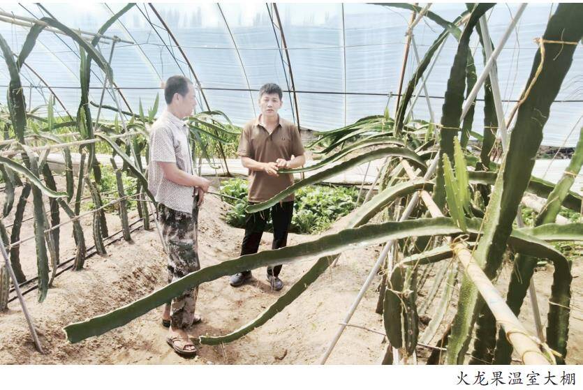 “您瞧这火龙果,再有一个多月就能挂果了!”温室大棚里,村民乔风林正细心为火龙果藤蔓剪枝。他照料的这2亩火龙果,是村集体2024年9月引进的新项目。“农闲时就来这儿打工,一个月能多挣3000元,日子越过越有奔头。”乔风林说,“这看似简单的活儿,剪枝、捆绑都有讲究,得用心。”