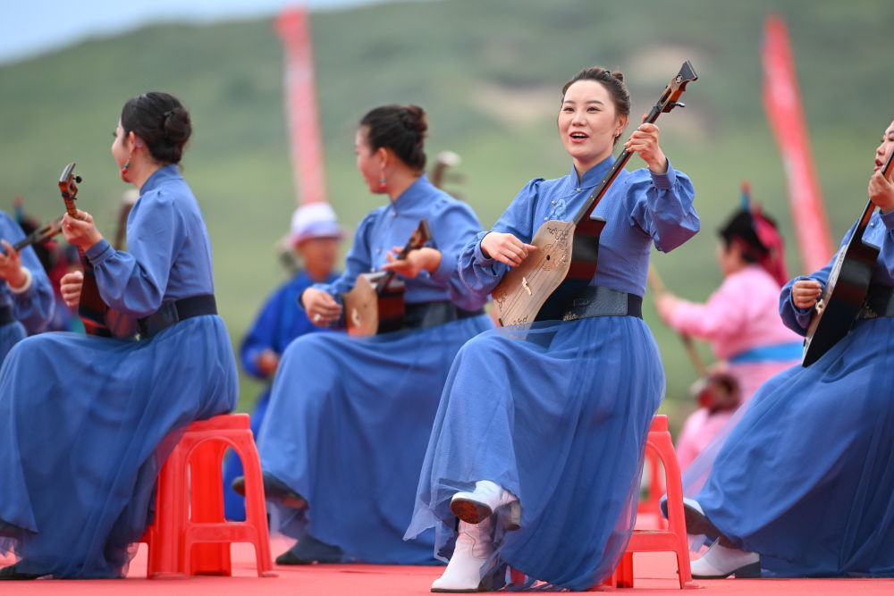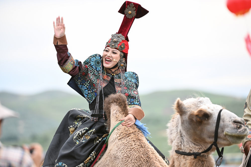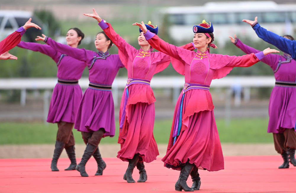7月20日,演员在内蒙古自治区第十一届少数民族传统体育运动会(巴林右旗分赛场)开赛仪式上表演。 新华社记者 贝赫 摄