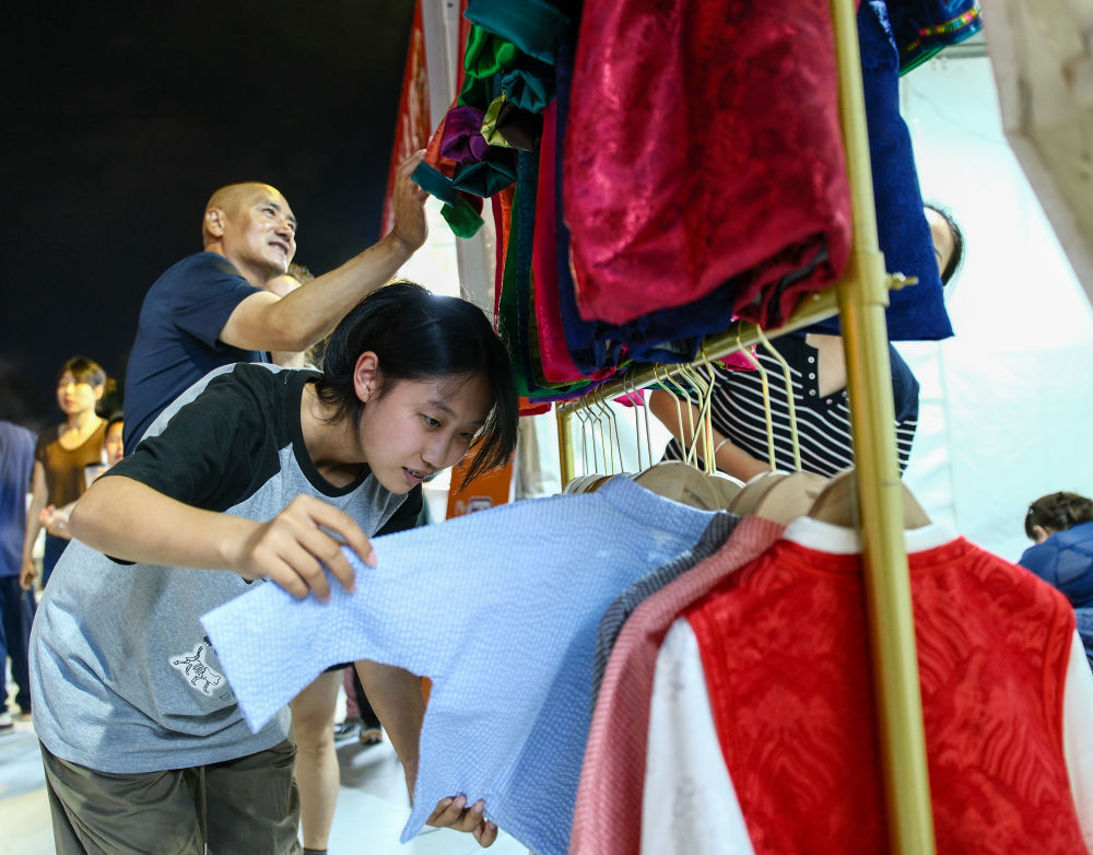 7月29日,游客们在内蒙古赤峰市“文旅体农商融合大集”上选购民族特色服饰。 新华社记者 马金瑞 摄