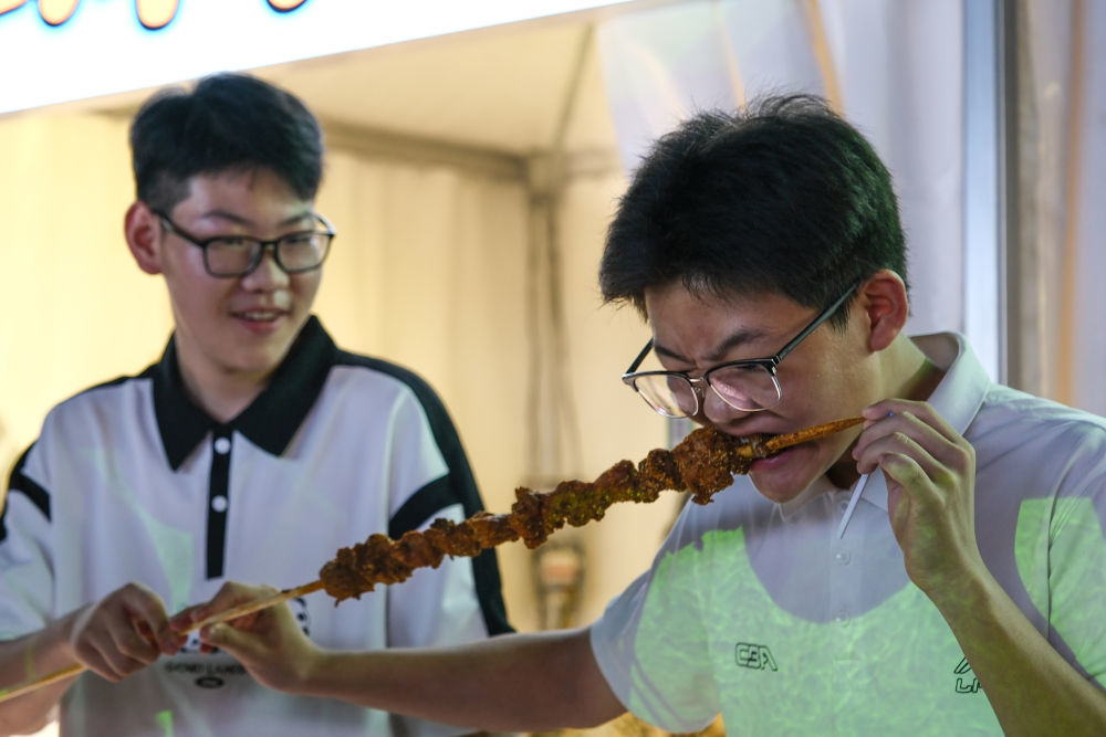 7月29日,游客们在内蒙古赤峰市“文旅体农商融合大集”上品尝美食。新华社记者 马金瑞 摄
