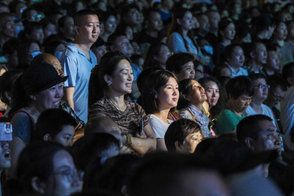 7月29日,在内蒙古赤峰市,游客们在观看民族联欢文艺展演。新华社记者 马金瑞 摄