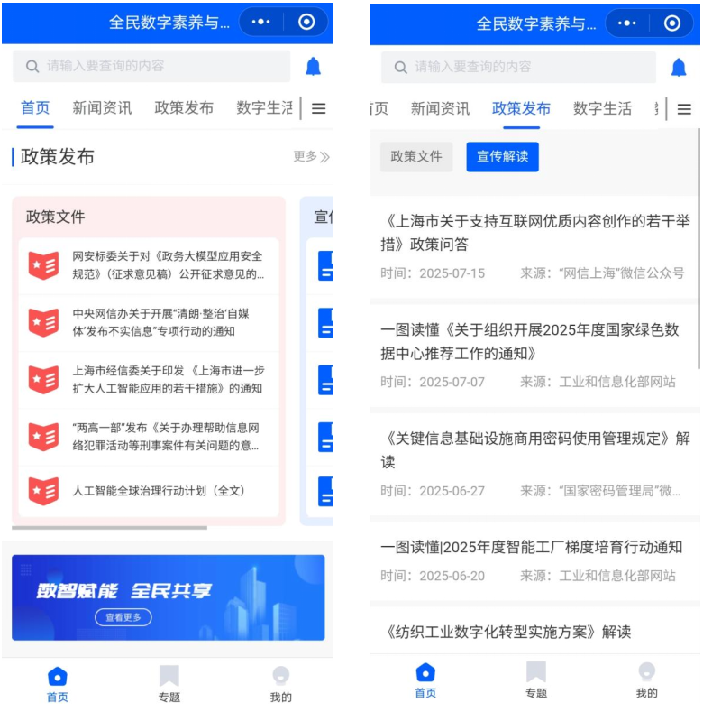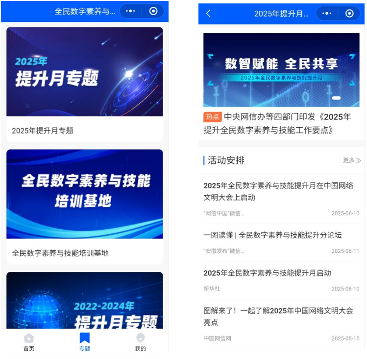 在小程序专题版块可点击查看全民数字素养与技能提升相关专题。