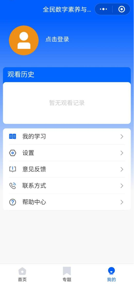 在小程序“我的”版块可进行个性化设置,也可查看观看历史、我的学习等相关情况。