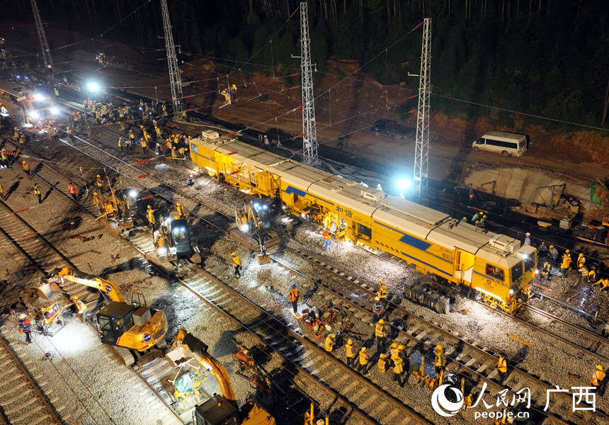 为确保马皇站站改施工顺利开展,广西沿海铁路公司、沿海铁路工程建设指挥部组织施工单位中铁三局利用列车运行间隙开展施工,搭配智能监测系统24小时值守,筑牢安全防线。同时,临时拓宽加固3条乡间道路,调配20余辆小型转运车构建“微循环”运输网,日均完成土方转运超8000立方米,畅通施工材料运输。