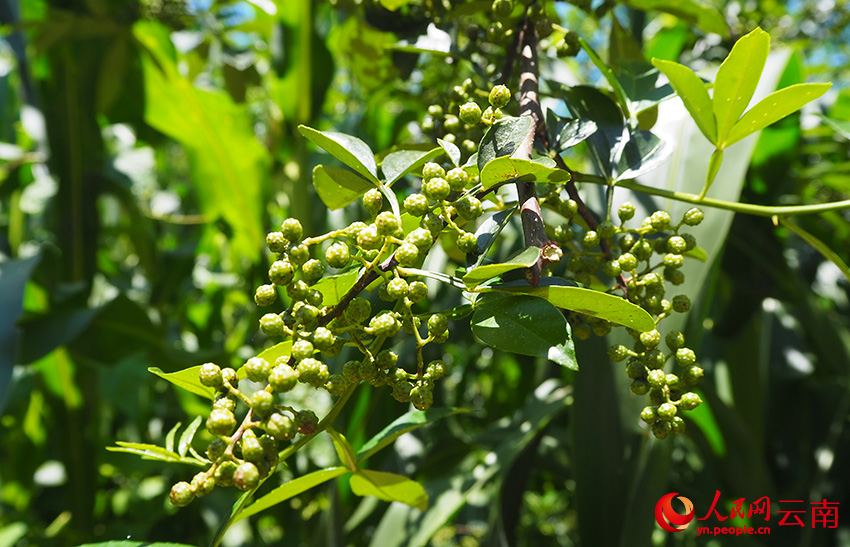 在巧家县包谷垴乡红石岩村,海拔1650米的山上散落着五百多户人家,房前屋后的花椒树枝繁叶茂,花椒粒粒饱满。椒农们抢抓农时采摘花椒,一派繁忙的丰收景象。