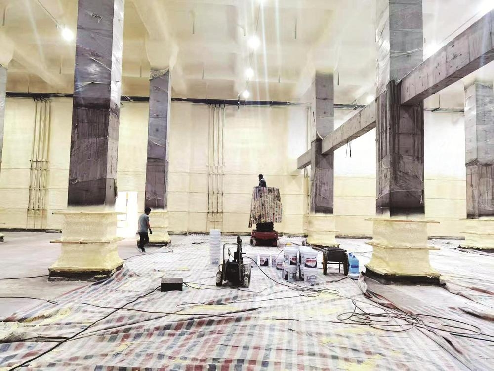 内墙保温层近20厘米厚,喷涂硬泡聚氨酯材料,呈淡黄色。施工负责人告诉记者,硬泡聚氨酯材料具有保温效能和防火性能好、稳定性强、能耐受气候变化等特点,在冷库建设中效果很好。这座冷库整体采用标准化建设模式,各个细节中充分融入智能环保理念,在制冷循环系统方面,摒弃传统的氟利昂制冷方式,转而采用新型水循环制冷技术,有助于节能减排。同时,冷库建设过程中通过引入智能化温控系统和先进保鲜技术,能够对仓储环境进行精准调控,有效延长储存产品的保质期。