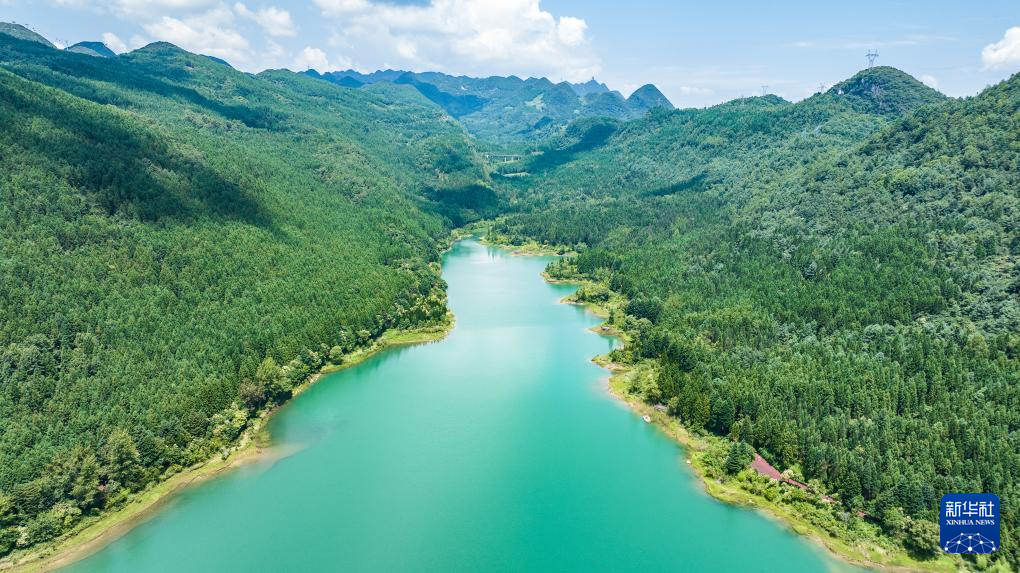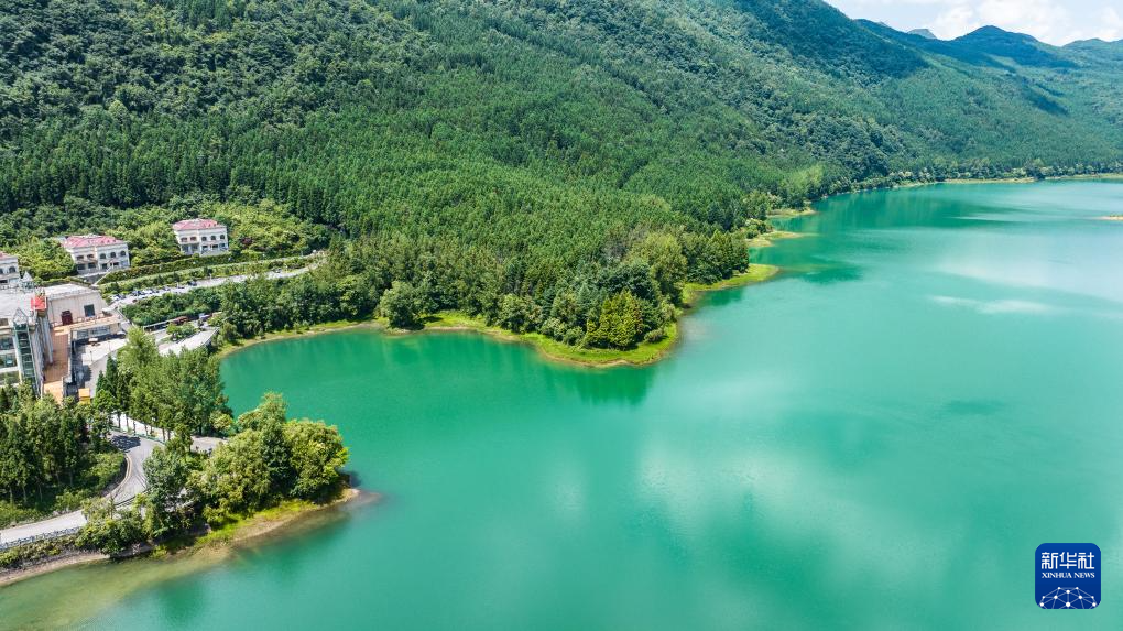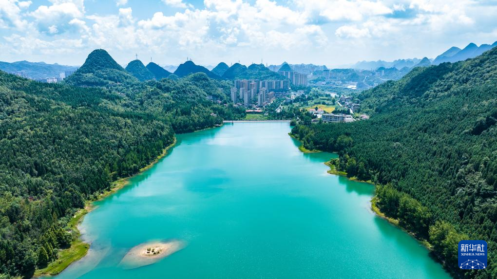 夏日时节,位于贵州省六盘水市钟山区的瑶池公园草木葱郁,湖水如碧,吸引众多游客前来休闲游玩。(陶亮)