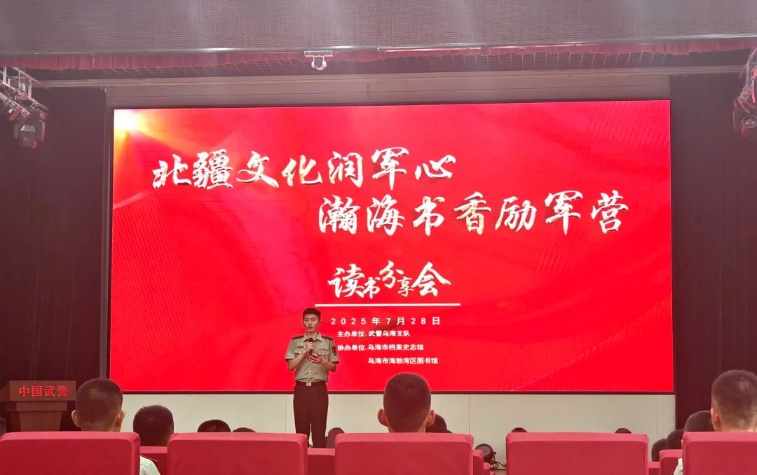 以书香浸润军心,以文化凝聚军民情谊。在八一建军节即将到来之际,为丰富部队官兵精神文化生活,推动新时代军营文化建设,海勃湾区图书馆与武警乌海支队共办读书分享会,官兵们围绕红色经典交流感悟,在书香中重温初心、共庆佳节,让文化拥军的暖流浸润军营。