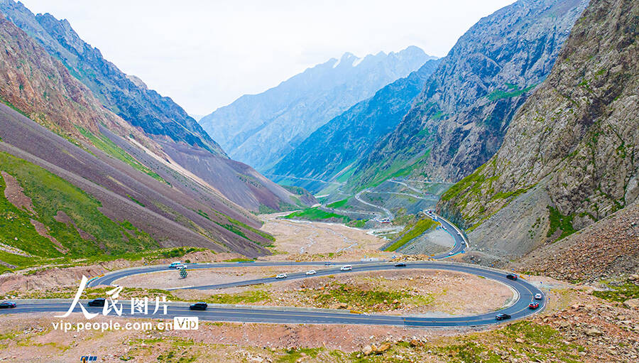 8月2日,在新疆塔城地区乌苏市境内,独库公路北段乌苏段哈希勒根达坂,山路蜿蜒,宛如盘旋的巨龙,纵贯天山脊梁。