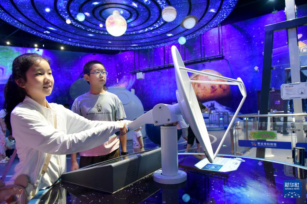 8月2日,小朋友在山东省枣庄市科技馆参观。新华社发(刘明祥 摄)